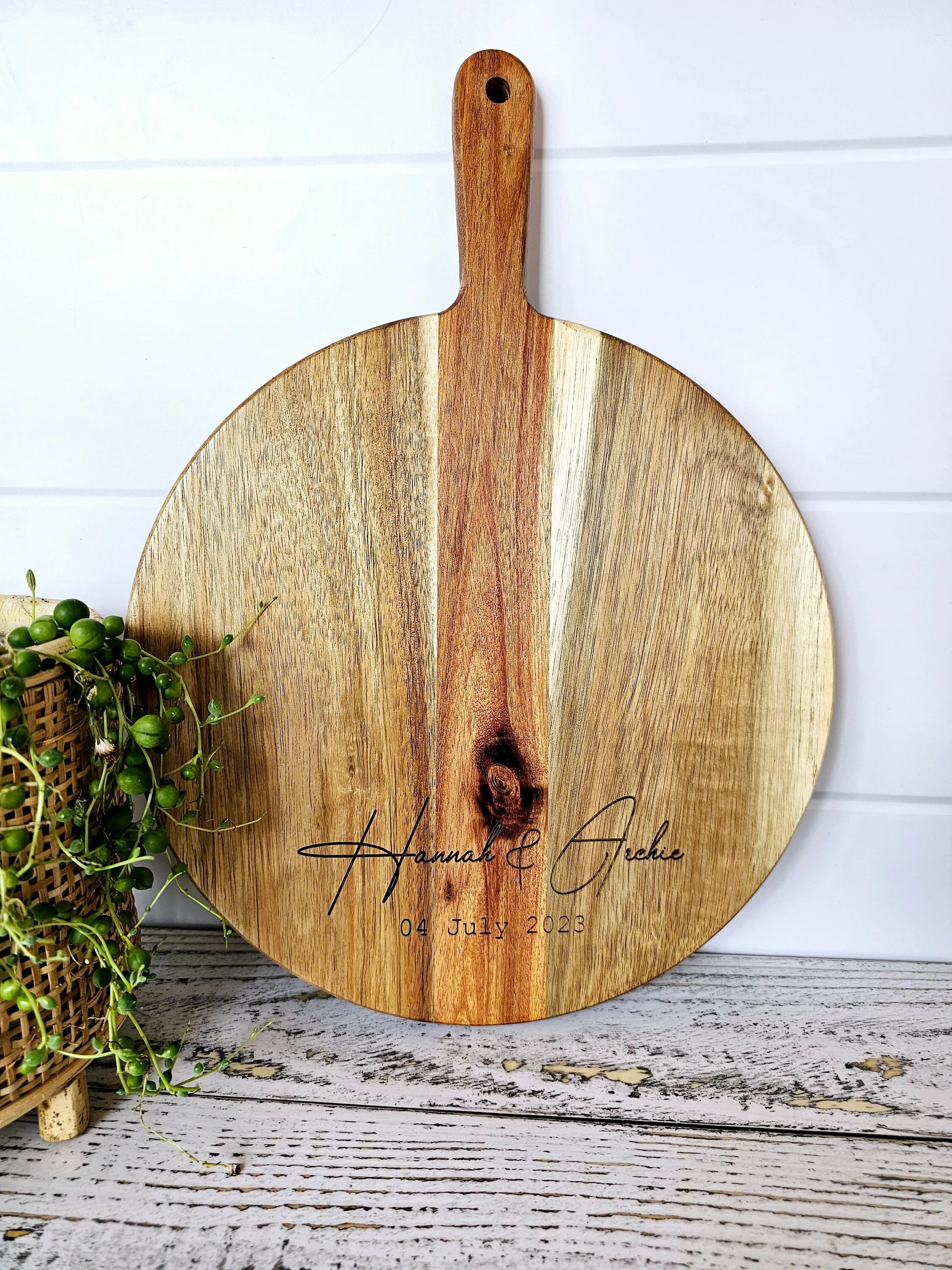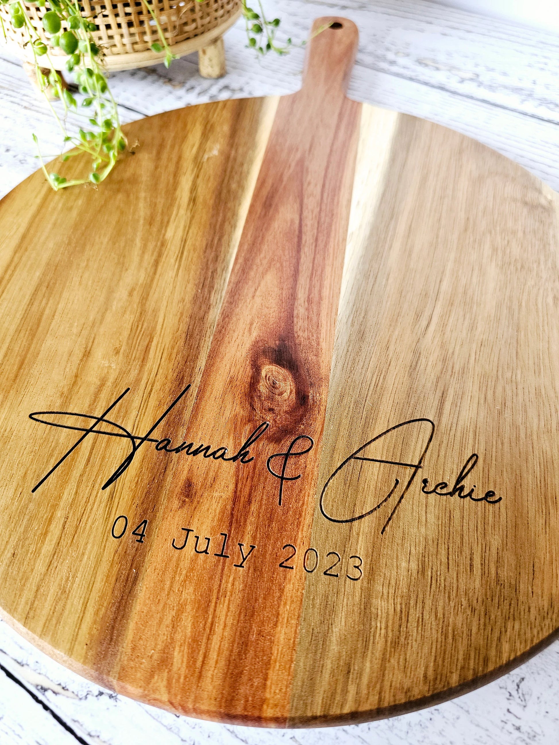 Craft the perfect personalized board for your loved one with our help. Our expertly designed boards are available in various sizes - small, large, and round. Each board is unique and makes for a great gift or keepsake. Made of timber, colors may vary slightly.